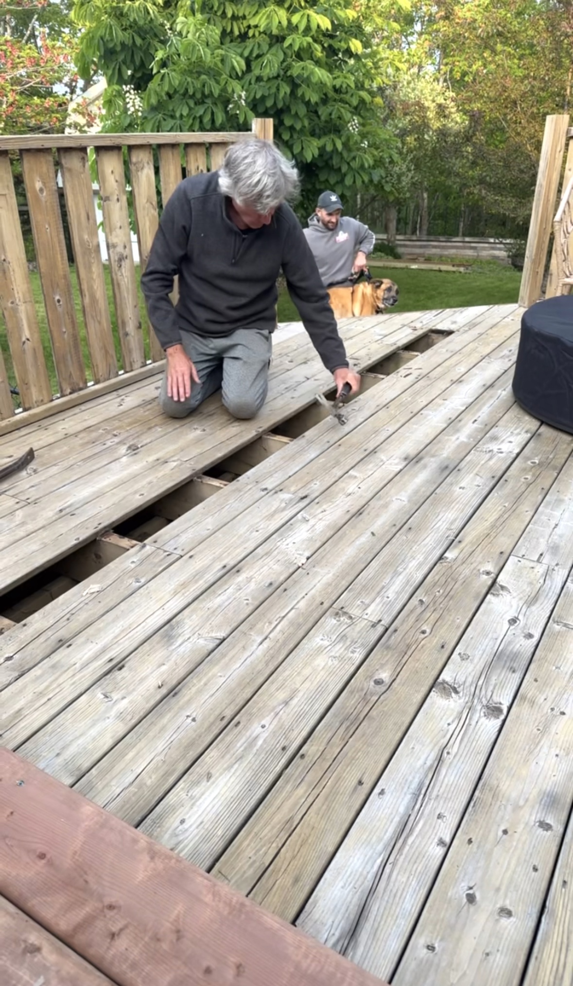 Once the deck was clean, we could see just how much needed replacing. Some boards were soft, cracked, or warped beyond repair. Especially our stairs.