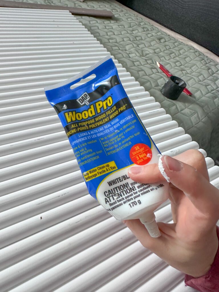 Once everything was attached, I filled the nail holes with wood filler.