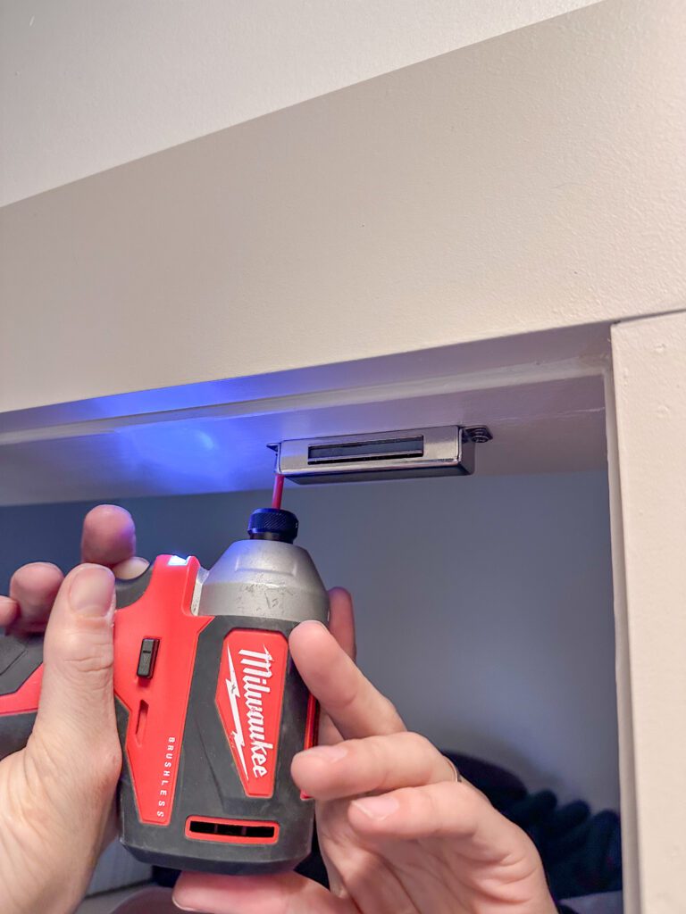 I installed a sleek pull handle to match the modern look. The final result? A completely updated reed molding door that feels designer and fits perfectly with the rest of our space. and I installed a magnet so that the door will stay closed!