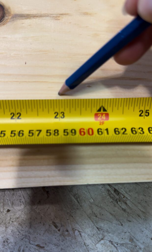 First, I chose a solid piece of wood that would complement the style of my home. I already had some leftover pine wood from another project so I opted to use that. After measuring the dimensions I wanted, I cut the wood to size by placing the floating numbers on the piece of wood to see what I liked best. This step allows for flexibility—you can keep it simple or go for a more decorative look depending on your taste.