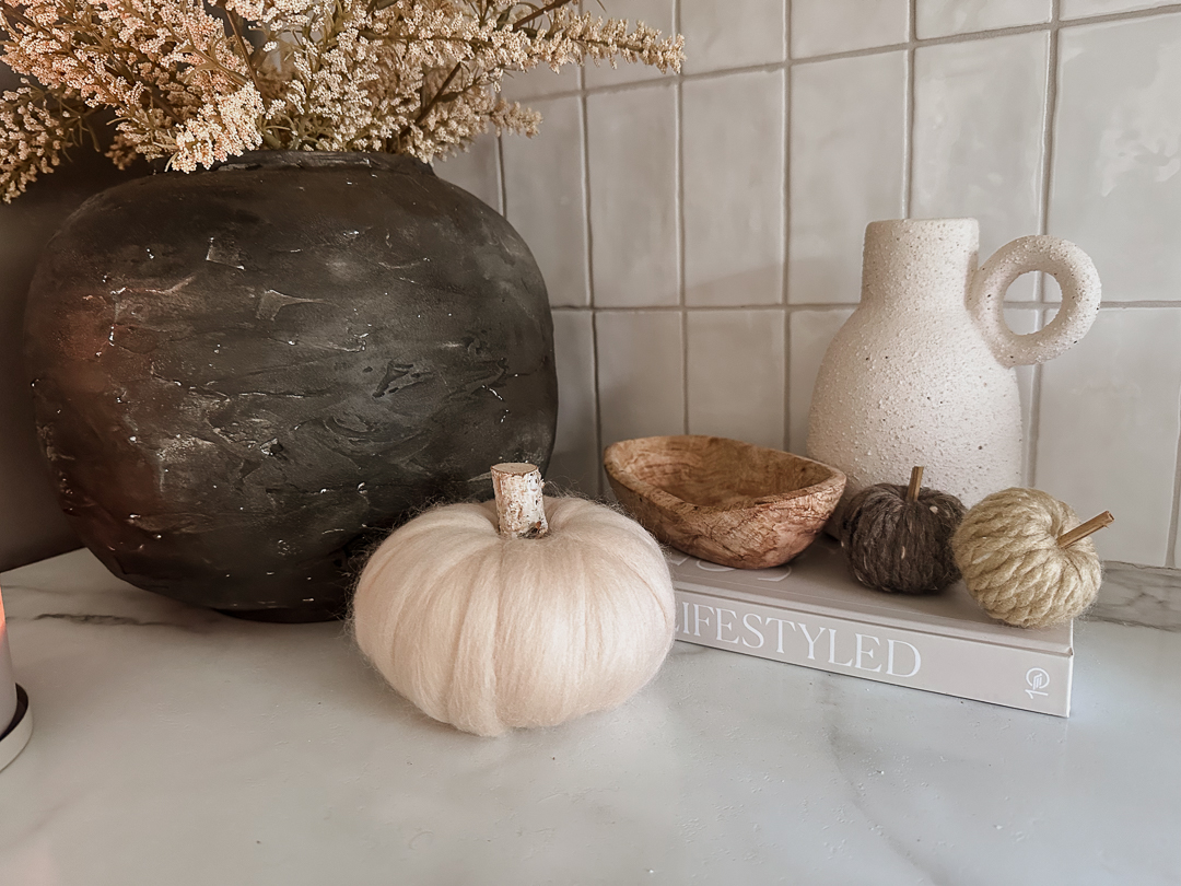 Iโve always held on to bits of neutral yarn from my macrame days, and this was the perfect way to repurpose them. Whether you want a soft, chunky look or a more textured vibe, thisย fall craft DIYย is such a fun way to create custom decor for your shelves, tables, or entryway.