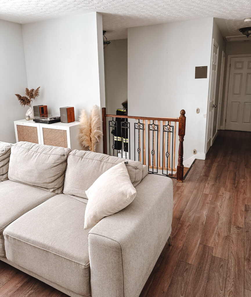 When we first moved into our home, our small split-entry living room felt anything but inviting. Builder-grade finishes, dull paint, and mismatched furniture made the space feel cold, cramped, and uninspired. I knew I wanted more than just a room to sit in—I wanted a modern organic living room that felt calm, curated, and cohesive.