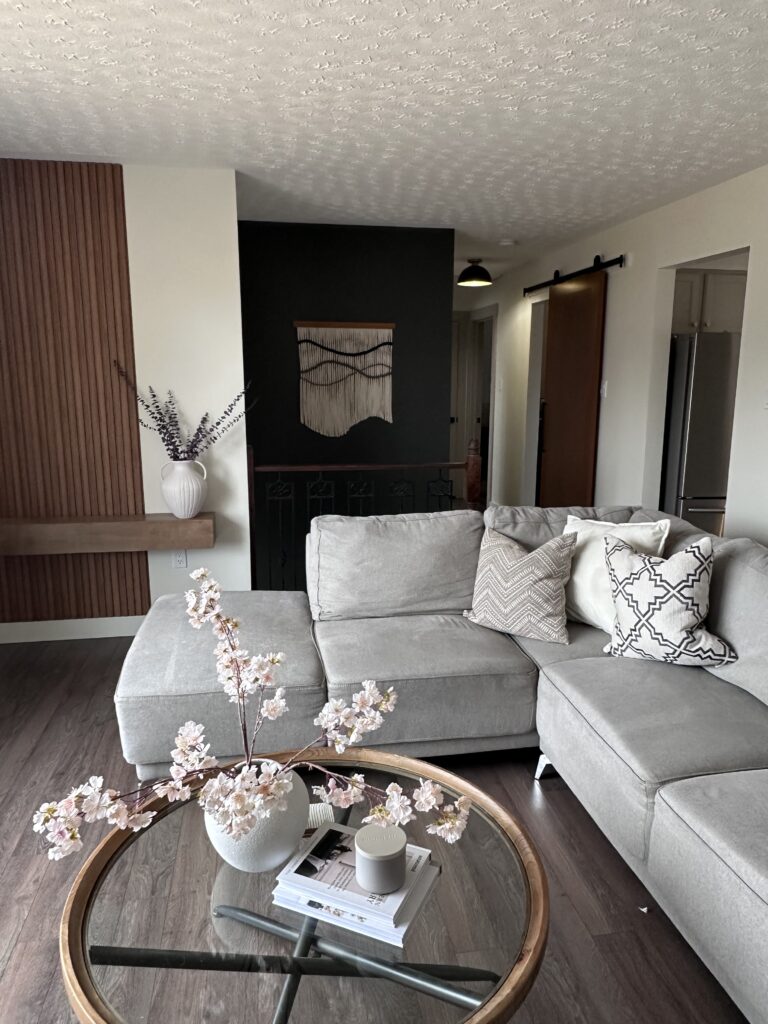 So, I recently upgraded our furniture through a partnership with Worldwide Furniture, and it was such a game-changer for this room. It brought the whole room together in the best way. We picked the Valley Sofa in Sand and the Tobin Loveseat in Dark Gray—both incredibly comfortable and thoughtfully designed.